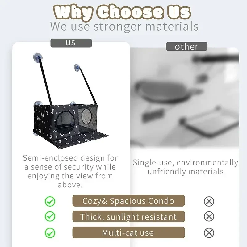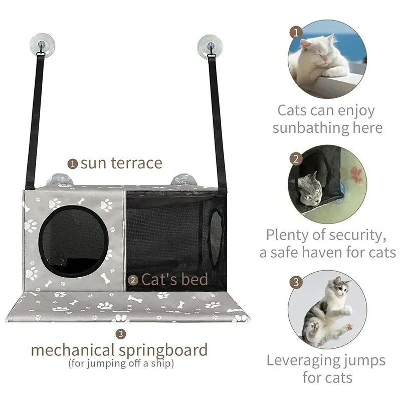 • 🐾 Sturdy Suspension System: Reinforced straps and metal hooks ensure safety; anti-slip base on floor cushion prevents sliding.